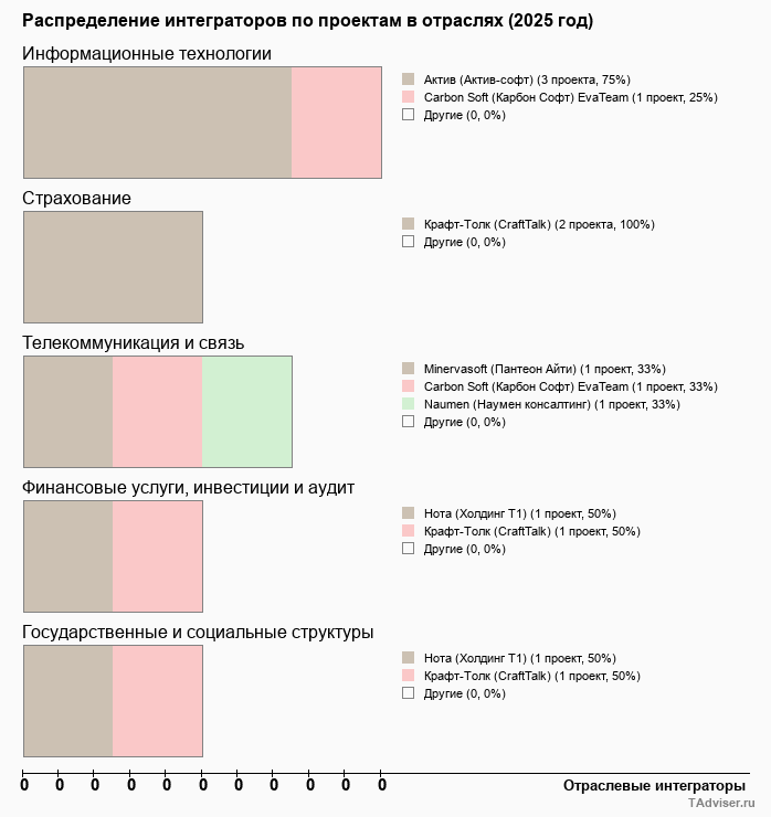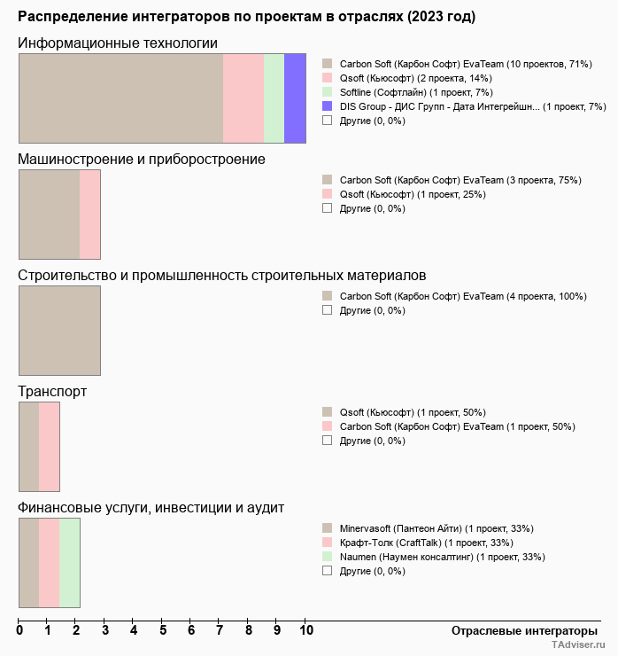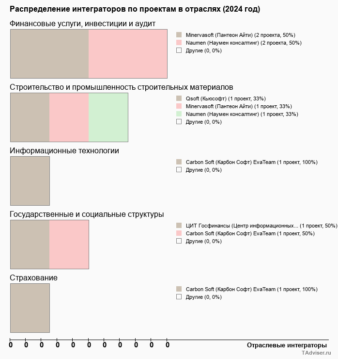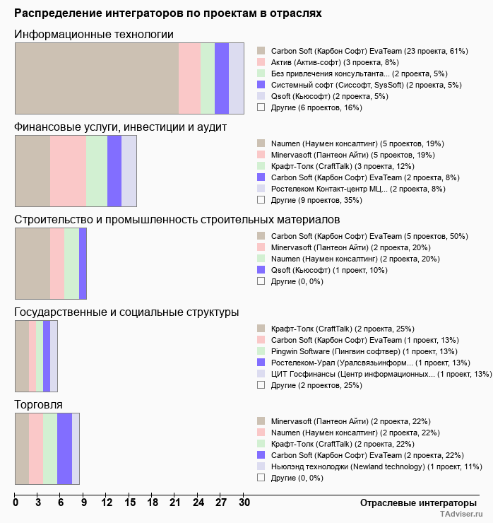 Отраслевое распределение по количеству проектов внедрений